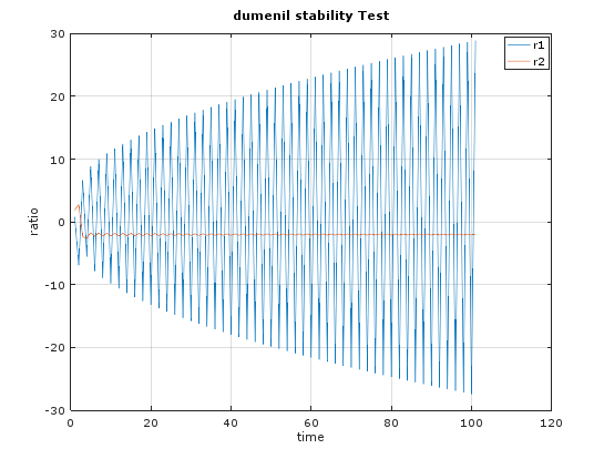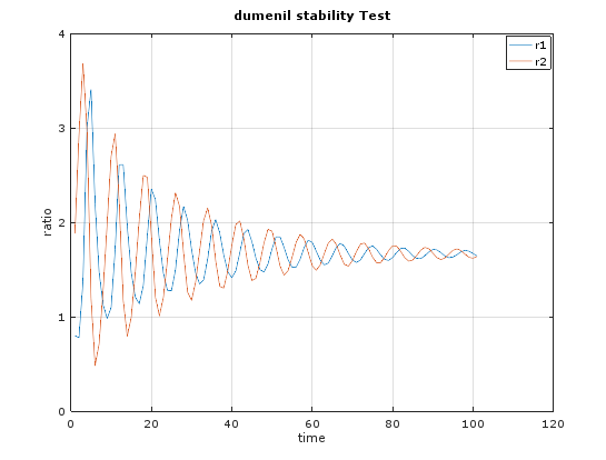 단, 여기서 뒤메닐(Duménil, G., & Lévy, D. (1993). ibid. p89.)의 수식이 틀렸는데, 뒤에 "-2"를 더하는 것을 빼먹은 것 같다. 다만 안정성 검증은 산출량 간 비율, 가격 간 비율에 대해 검증하므로 그리 크리티컬한 문제는 아닌 것 같다.
