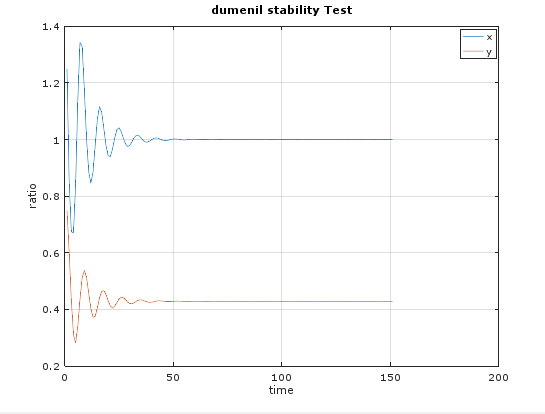 과연 이 모형은 반응계수의 정도가 안정성에 영향을 미치는 지 확인하고 싶어할 것이다. 그러나 수학적으로는 "국소적" 의미에서만 검증된다는 한계가 있으며 좀 더 이것의 의미를 제대로 음미하고 싶기도 했다. 이를 시뮬레이션을 통해 검증을 해보았다.
