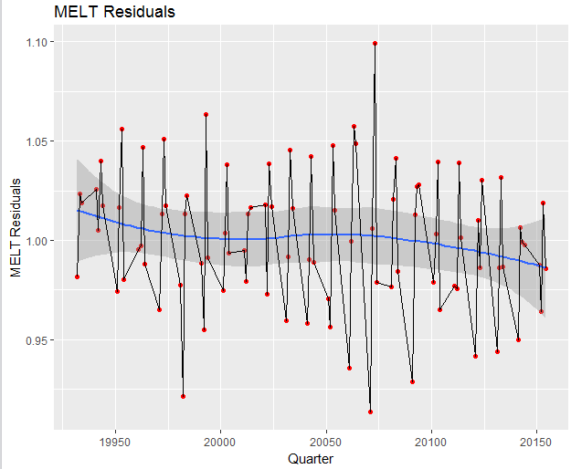 이로서 무엇을 알 수 있는가? 바로 노동시간이 설명할 수 없는, 즉 MELT에 오차를 만드는 요인이 무엇인가를 추세를 통해 확인해볼 수 있다는 점이다. 아래의 그림을 확인해보자.